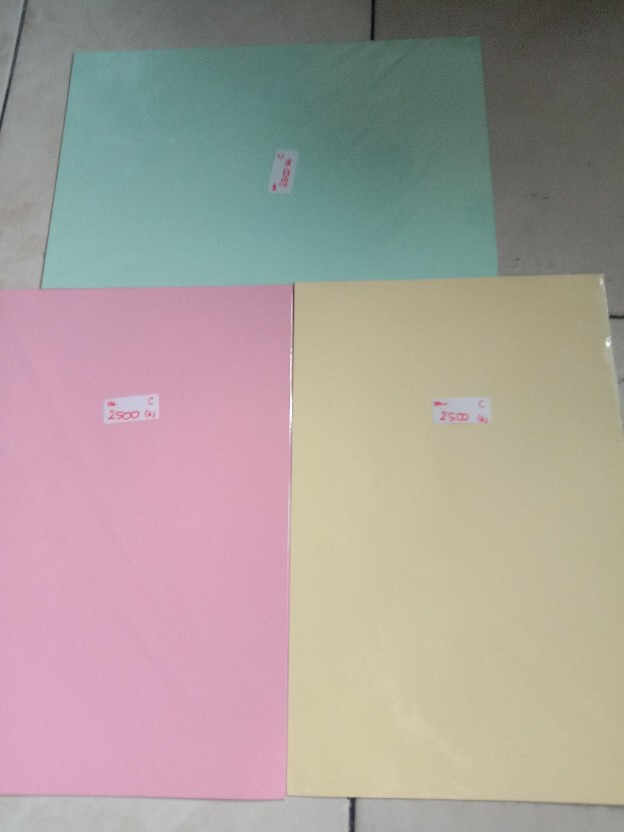 Selanjutnya proses pengguntingan, pilih bahan yang akan digunting, lalu tempelkan bahan tadi dengan lem ke lembaran kertas hvs.